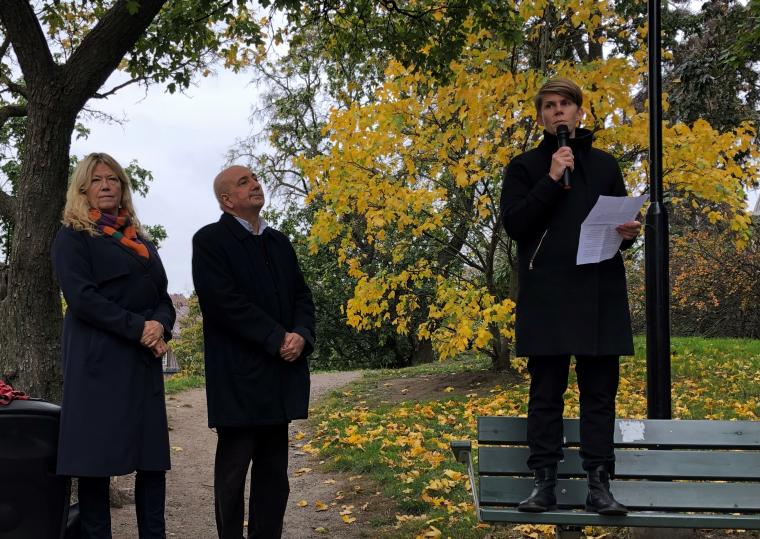"Vi står här för Jamal men även för alla de journalister som är fängslade i Saudiarabien", sa Ulrika Hyllert på manifestationen vid Saudiarabiens ambassad i Stockholm för den mördade saudiske journalisten Jamal Khashoggi.