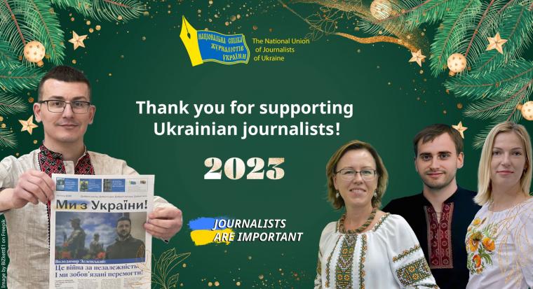 Vi har fått ett nyårsbrev från det ukrainska journalistförbundet NUJU, där de riktar sitt varmaste tack till alla förbundets medlemmar som på olika sätt visat sitt stöd under året som gått.